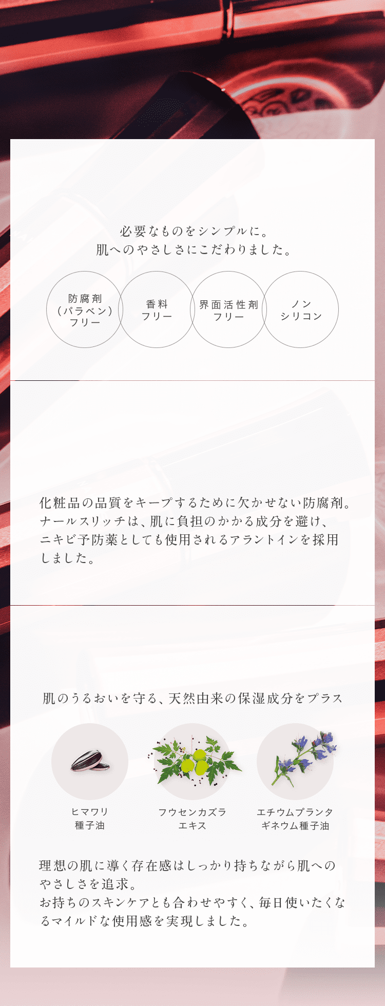 シワ対策や保湿の成分が